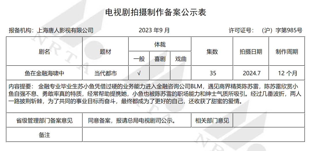 根据简介来看,本剧主打职场与爱情。唐人影视之前深耕古装仙侠剧,制作的《仙剑奇侠传》系列粉丝基数大、口碑佳,古装题材爆剧多,对于都市爱情剧,唐人去年拿出了《完美伴侣》,同样是职场爱情题材剧。对于《鱼在金融海啸中》来说,在当下用一本老书拍出新花样成为了一个难点,剧集表现如何就让我们拭目以待吧。