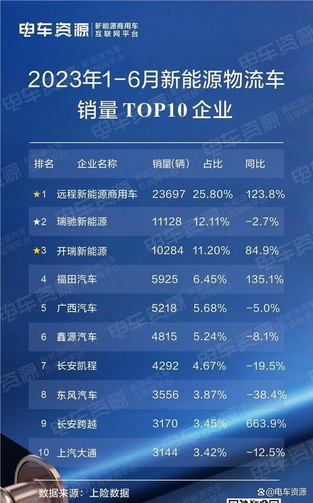 “趣解商业”查看有统计显示,今年1-6月,国内新能源物流车(不含物流重卡、皮卡和交叉型乘用车)总销量9.18万台,赛力斯的子公司瑞驰新能源销售了11128台,位列销量榜第二,仅次于吉利旗下的远程新能源。对于这一市场,曾经被叫做小康股份的赛力斯,显然更具信心。
