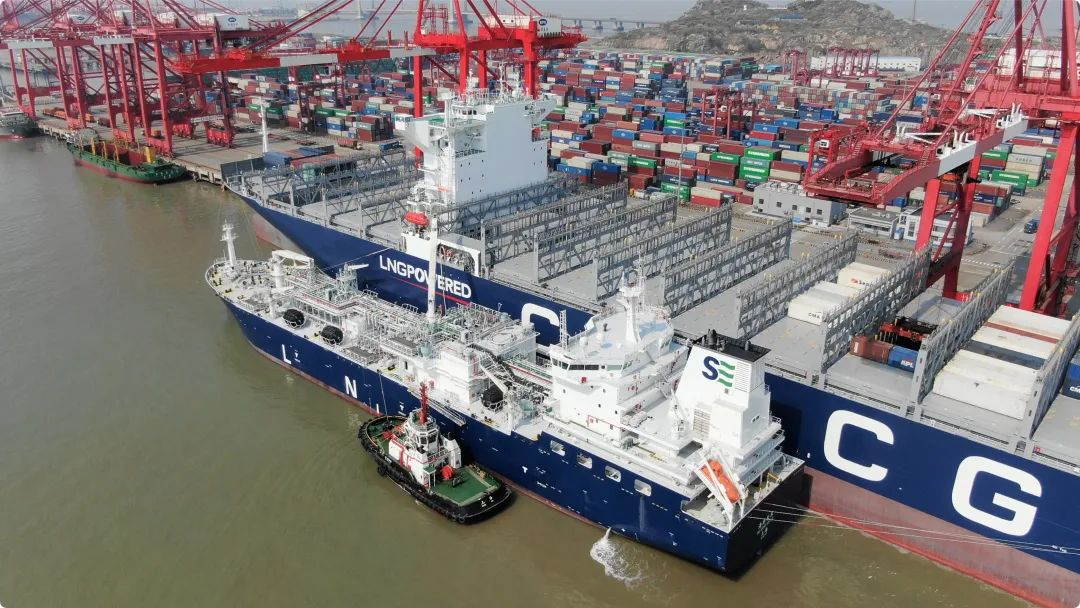 为此,上港集团同法国达飞集团等国际主要航运公司合作,大力开拓清洁能源加注服务。