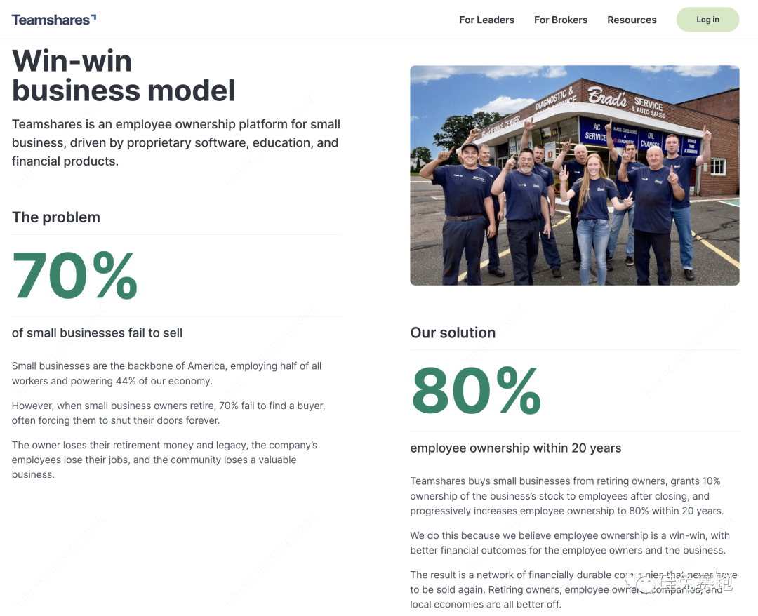 由于这种独特的员工所有权模式,当Teamshares购买一家小企业时,这家小企业不会被再次出售,可以继续作为社区的重要组成部分运营。