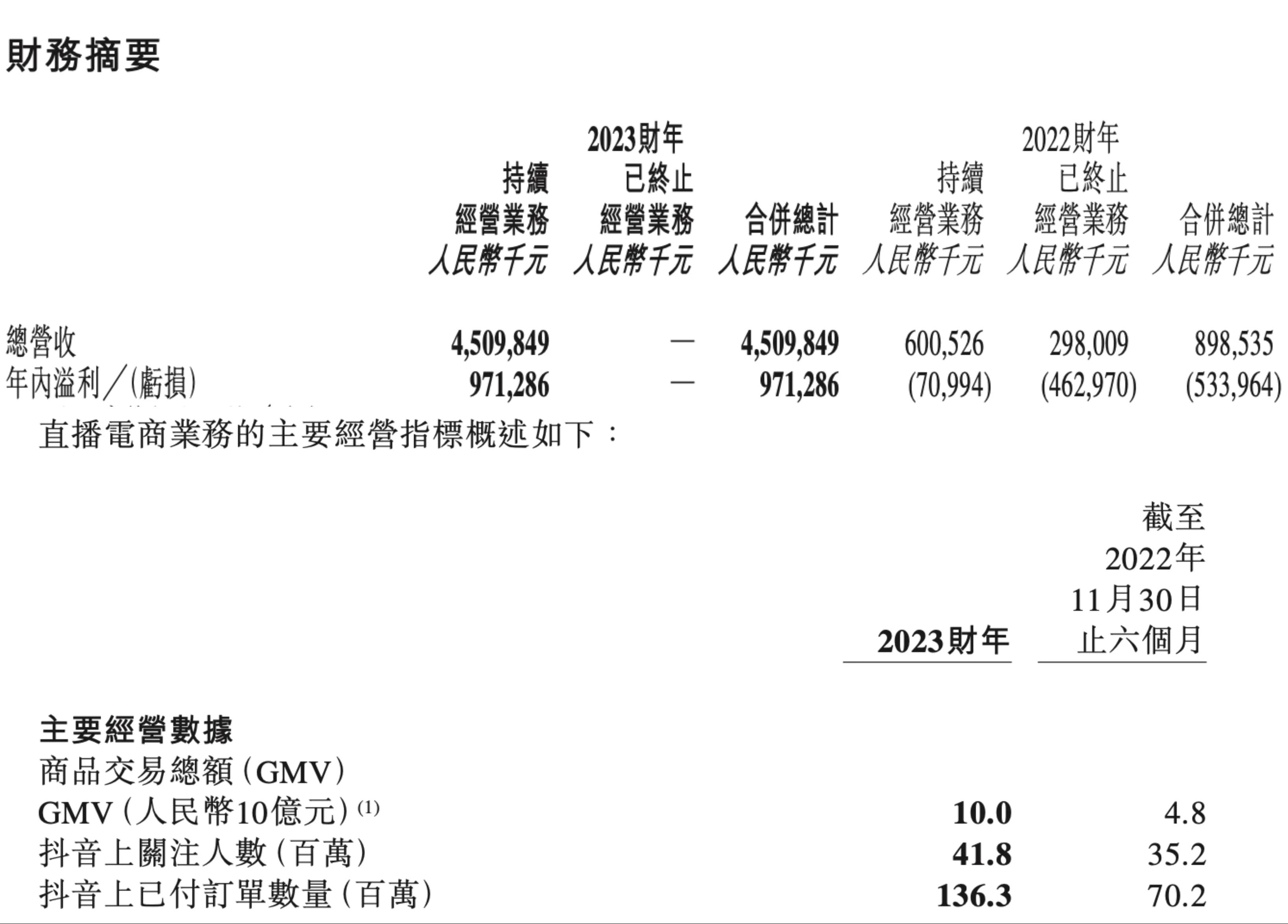 从东方甄选的全年财报中也能看出,东方甄选报告期内(2022年6月至2023年5月)实现总营收45亿元,净利润9.71亿元。其中,直播带货营收39亿元,自营产品的总营收超过26亿元。