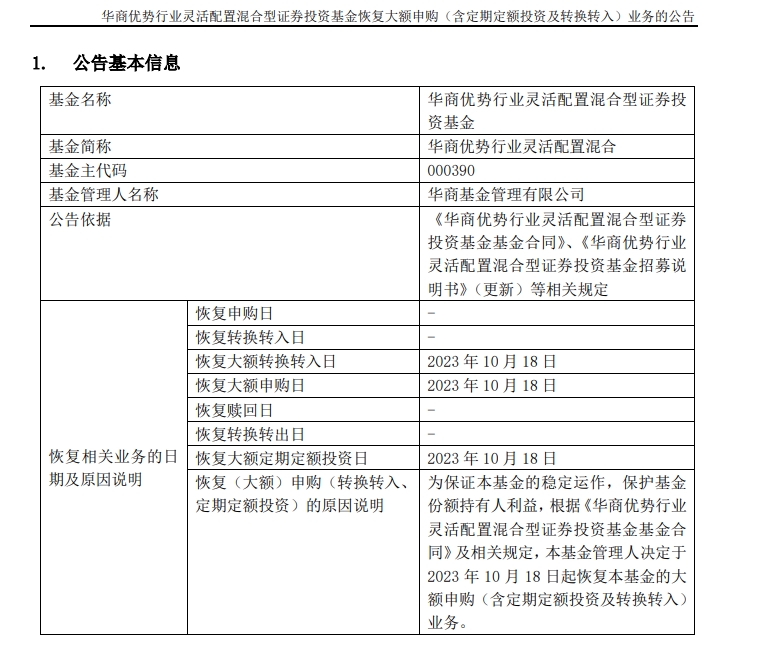 10月18日,由周海栋管理的华商恒益稳健混合、华商优势行业灵活配置混合、曲径管理的中欧量化驱动均发布公告表示,为满足广大投资者的投资需求,该产品自10月18日起恢复大额申购、大额转换转入及大额定期定额投资业务。以华商优势行业为例,该基金自今年5月4日起单日申购上限不超30万元。
