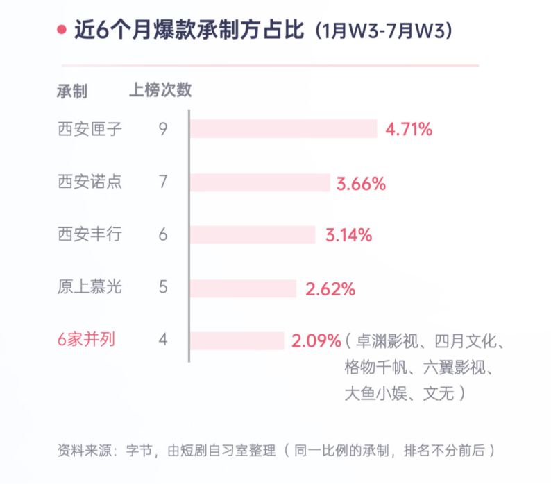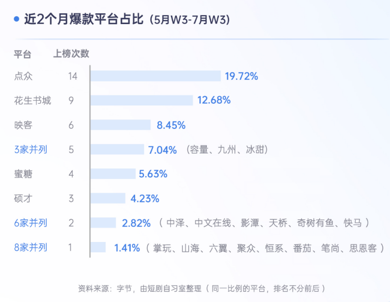 小程序剧制作公司的规模大多不大,因此产能也有限,在选择平台时只能优中择优,事实证明也是头部平台爆款更多。