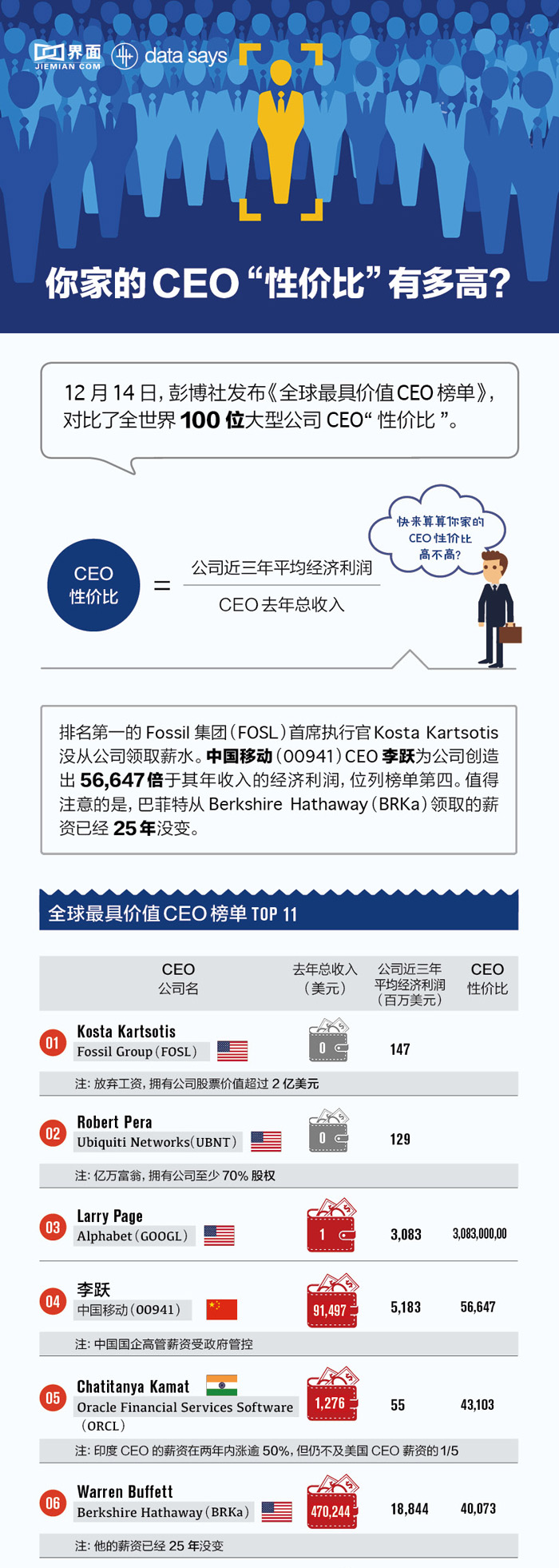 【图解】你家CEO的“性价比”有多高?