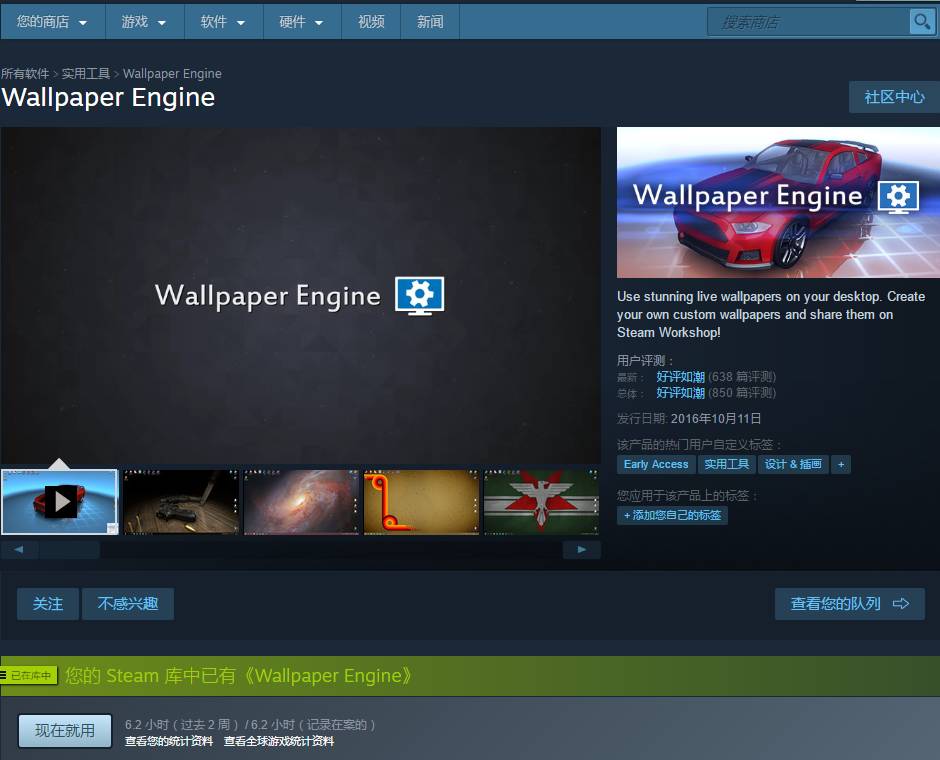 这款软件的名字简单粗暴,叫 Wallpaper Engine (壁纸引擎),是个壁纸应用。