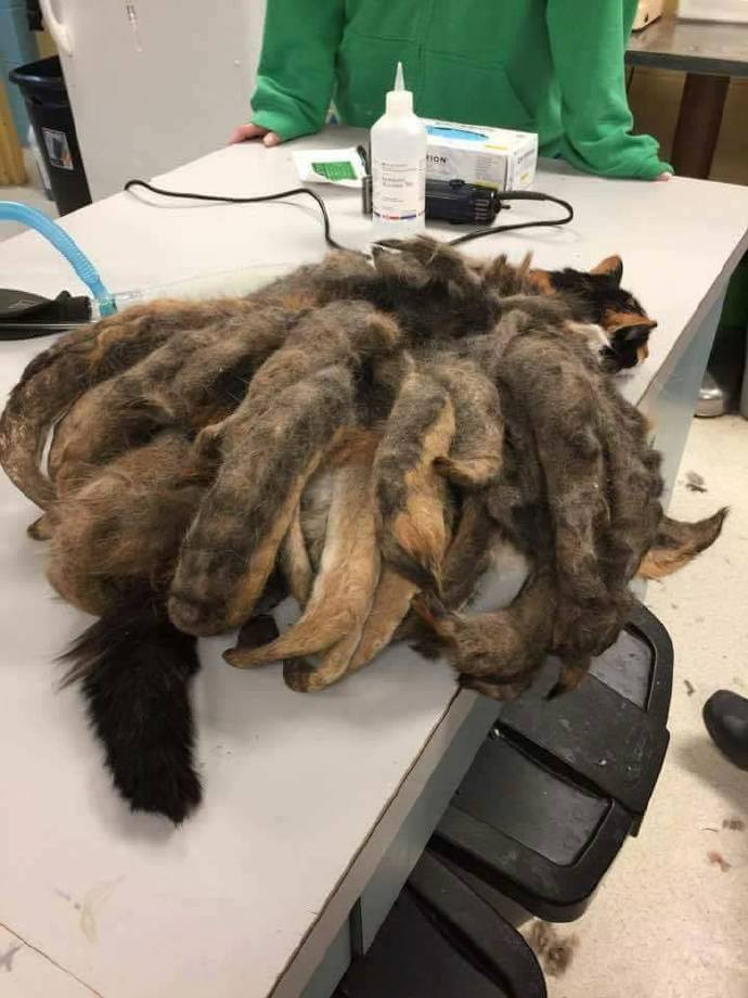 imgur上一位网友PO了一只被动物救助中心救助的猫咪,它脸部的毛长度很正常,但是全身却长满了毛尾巴(?),这何止九尾啊,二十尾都有了吧