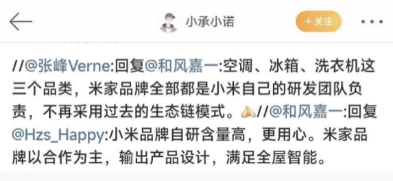 此前在2022年,张峰也曾表示,“空冰洗”三个品类全部都是由小米自己的研发团队负责,不再采用过去的生态链模式。