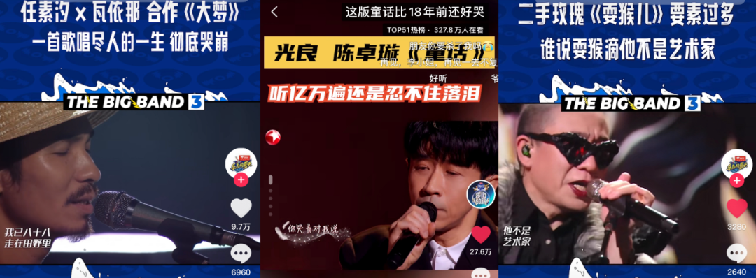 先有任素汐&瓦伊那“用7分55秒唱尽普通人一生”的《大梦》被朋友圈转发刷屏;再有光良罕见现身内娱唱《童话》把 #这版童话比18年前还好哭# 刷上抖音热榜;还有最新一期《乐夏3》二手玫瑰改编《耍猴儿》引乐评圈集体解读热潮。
