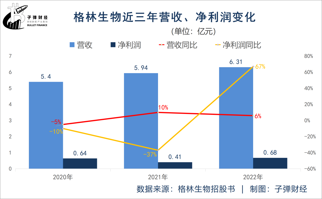 不过,从近三年业绩来看,格林生物营收增长进入瓶颈期。2020年,格林生物营收出现负增长,实现营收5.4亿元,同比减少5%。2022年,格林生物实现营收6.31亿元,较2021年的5.94亿元同比增长6%,但营收增速却较2021年下滑4个百分点。