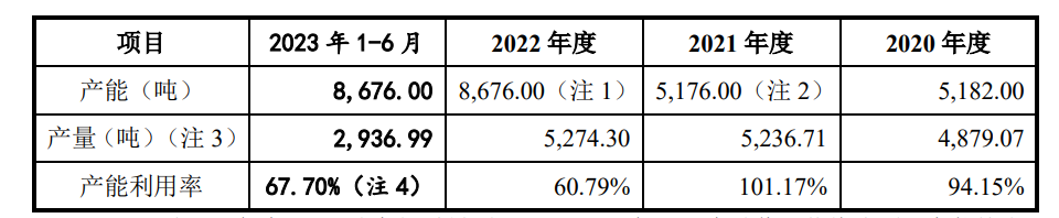 随着产能的大幅提升,格林生物2022年和2023年1-6月的产能利用率降低至60.79%、67.7%。
