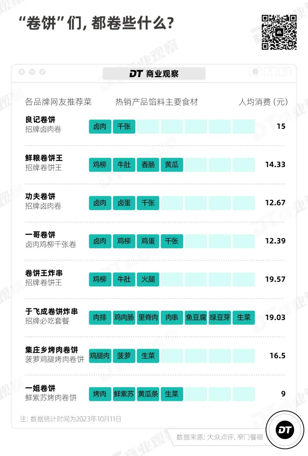 通过拆解几家热门卷饼品牌的招牌产品,我们发现:丰富的馅料,是连锁卷饼品牌们,主要“卷”的方向。