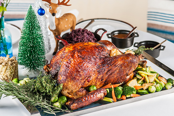 酒店推出经典圣诞火鸡外卖礼盒,火鸡肚子里塞满了馅料,鲜嫩可口,售价788元,请提前24小时预订。