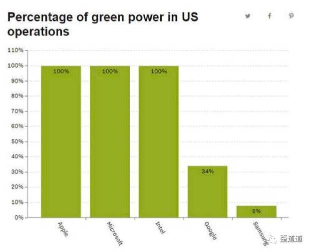 根据《世界能源投资2016》报告,去年全球可再生能源领域共投资3130亿美元,占能源领域投资总额的近1/5,其中,可再生能源成为电力领域最大的投资来源,相反全球燃气发电投资却大幅下跌了近40%。所以仅从电力来源上来看可再生资源已经成为主流,而苹果相比其他硅谷科技公司在这一步上走得更远更是出于对清洁能源的趋势判断,当然更因为自身所需,尤其是基于数据中心耗电量和排放量的担忧。