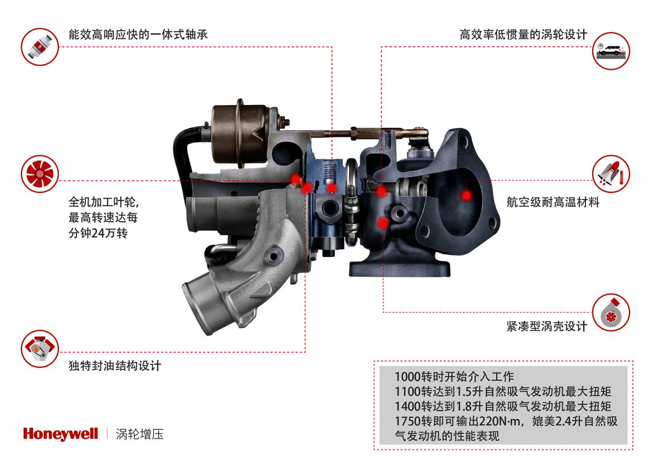 但此外,在我们还没读到的信息里,还包括高海拔保持强劲动力、独特的一体式轴承保证涡轮瞬间响应,以及百公里油耗6.8-6.9L, 比相同动力自然吸气发动机省油20%。