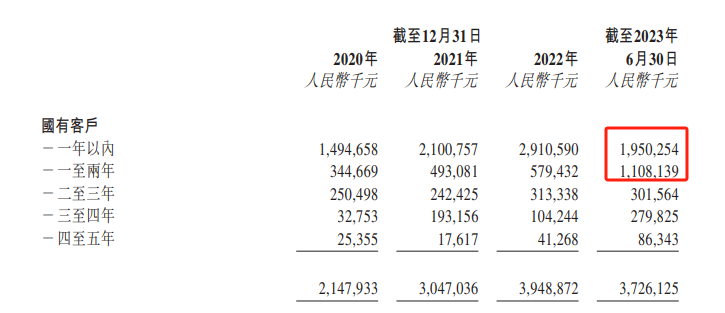而一至两年贸易应收款项则由5.79亿元上升至11.08亿元。三至四年贸易应收款项余额则由1.04亿元上升至2.80亿元。非国有客户贸易应收款项账龄也面临同样问题,坏账比例最低的一年内短期贸易应收款项余额出现下滑,坏账比例较高的一至两年及以上账龄的贸易应收款项余额在上升。