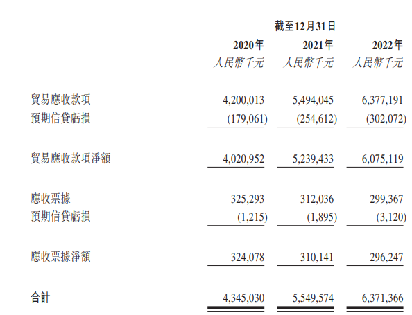 数据显示,2020年至2022年12月31日,山西安装贸易应收款项及应收票据总额分别为43.45亿元、55.50亿元、63.71亿元,山西安装应收账款及应收票据余额逐年走高。
