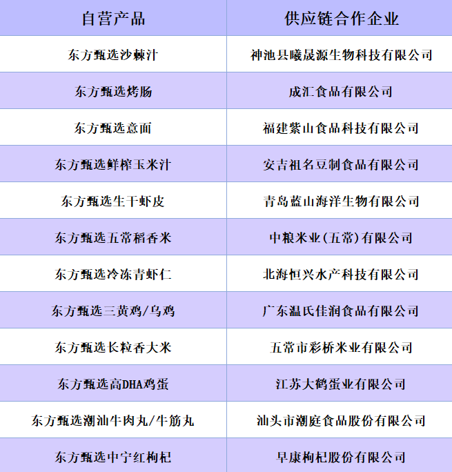 东方甄选自营产品和合作企业,图源:奇偶派绘制