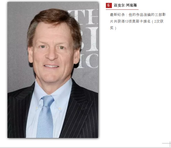 “我又走运了,三发三中,”刘易斯这么说道,他是《点球成金》《弱点》和《大空头》的作者,这三部作品改编的影片都在大银幕上取得了成功(他在电视业的五次尝试则没有那么顺利:“我就像是要去踢那个橄榄球的查理·布朗,而电视行业就是露西。”)他的最新改编电影作品《大空头》,获得了5项奥斯卡提名,包括最佳影片奖;亚当·麦凯和查尔斯·兰道夫最终获得了最佳改编剧本奖。刘易斯现在正在完成他的最新作品,《消除计划:一种改变我们心智的友谊》,这本书将在今年12月6日上架。“这可能是我写过的最有电影感的书,一个关于两个以色列心理学家的兄弟情的故事,”这位出身于加州伯克利的55岁作家这么说道,“它有点像《断背山》,但他们俩是和彼此的思想做爱。”