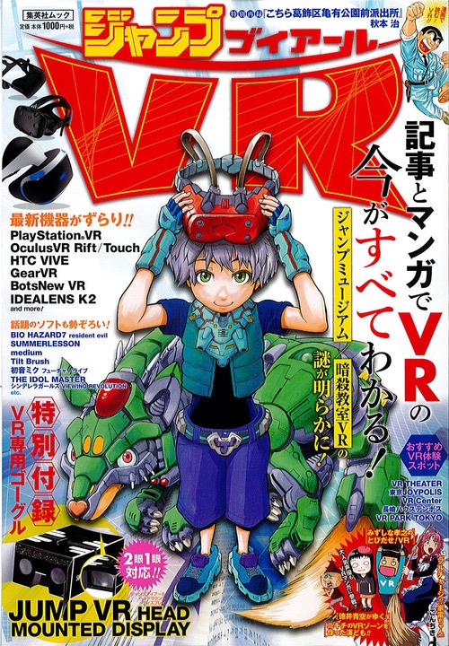 而这场活动其实是JUMP旗下全新的副线杂志《JUMP VR》的宣传。不过这本万众期待的VR漫画书,其实并没有宣传的那么有趣:前半部分是硬件介绍,他们详细评测了三款当下热门的VR眼镜、可玩的内容;后半部分则汇集了所有与VR相关、或是曾经预测过VR出现的漫画。漫画赠品是一个纸盒式VR眼镜,不过只能与合作方的手机App配合使用,并不能用来看漫画。