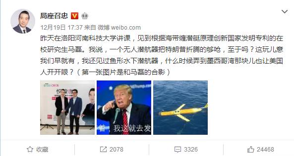 局座张召忠作为优质军武内容的幽默输出者,获得了年轻网民的支持。号称“战略忽悠局”局长的他,微博粉丝超过200万,军事科普网络直播观众达2000多万。不仅在军迷心中有重要地位,还坐稳了“中老年网红第一把交椅”,在网红排行榜名列第五。