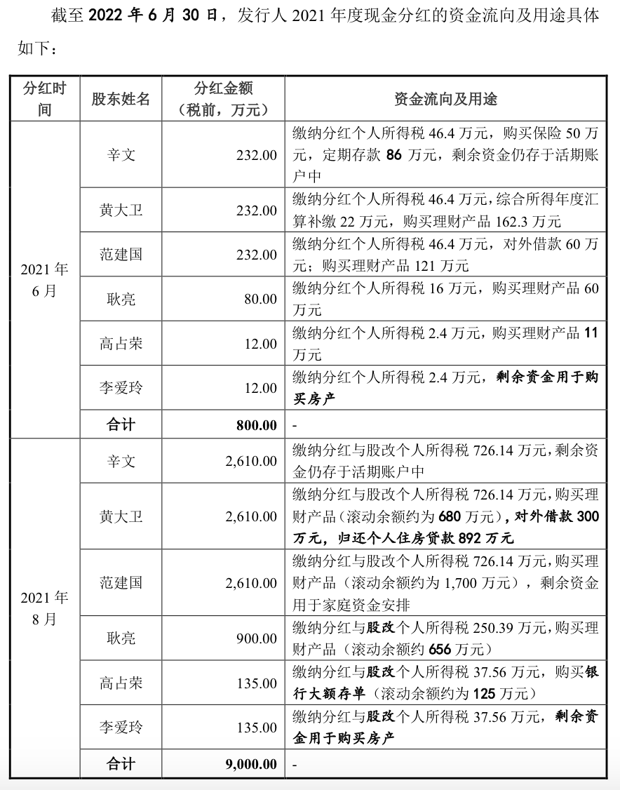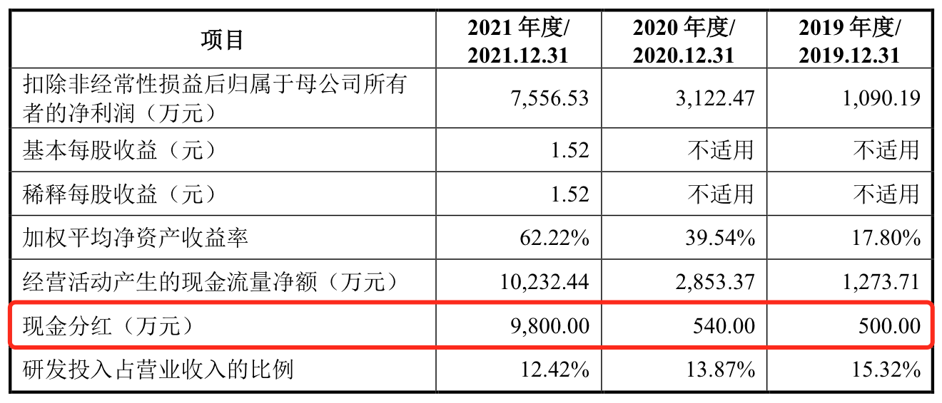 从说明书中看到,全式金曾在2019年分红500万元,2020年分红540万元,2021年9800万元。