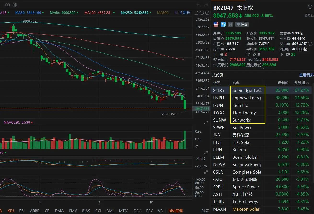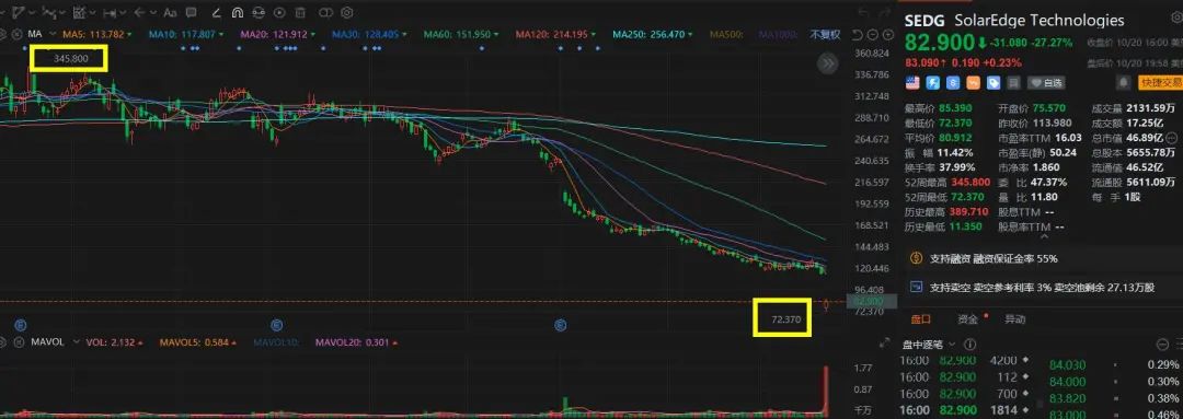 美国时间上周五盘前,SolarEdge公布第三季度业绩预告,导致该公司股价一夜暴跌27.3%,盘中最大跌幅高达36.5%,同时带崩了美国整个光伏板块。