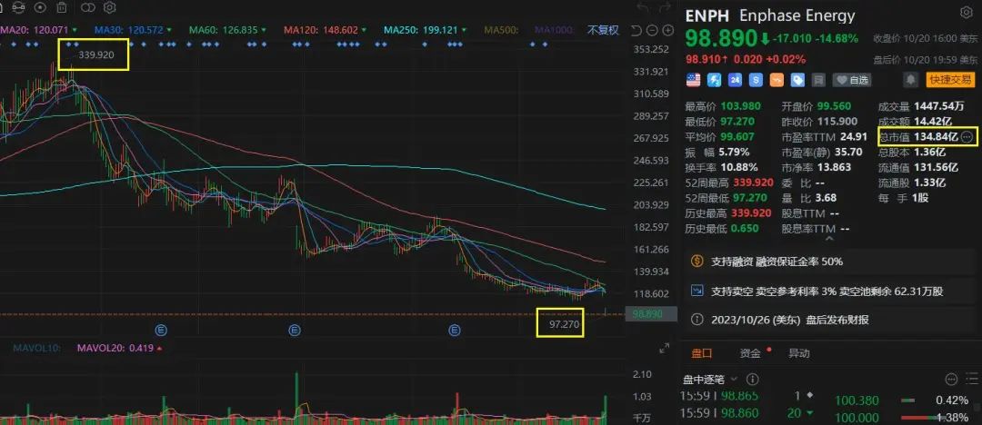 受SolarEdge利空影响,美国光伏板块暴跌。当日位列美股光伏跌幅第二的是著名微逆企业——Enphase Energy(ENPH),大跌14.68%。