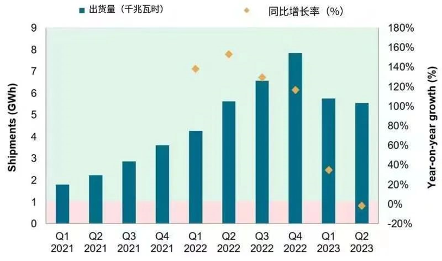 10月13日,标准普尔全球商品洞察指出,2023年第二季度,对于户用储能产品来说,成为有记录以来增速最差的一个季度,全球住宅储能出货量首次出现下降的情况——同比下降2%。