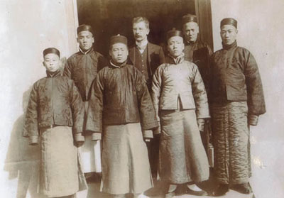 这一年的夏天就在一连串惊险中度过,我们还不知道与义和团的交战会有什么样的结局。理查德满怀热情地投身于学习和研究中文,现在的他不会再被教会公务牵扯精力了。有一天,来了两名中国学生,请求他教他们德语,他便开办了一个德语班。刚开始时,他在客厅为学生授课,后来学生数量增加到14名。还有一些病人也上门寻求理查德的帮助。最初,病人被安排在仆人院子里,由一位在长老教会学过医学,尤其擅长眼科疾病的老师为他们做一些必要的治疗措施。后来,由于一些病人的病情不适合马上送走,我们便腾出了几间本来打算安置仆人家属的房间,作为临时病房。就这样,在理查德放弃牧师工作的第一个夏天,中德文研修班和花之安医院初具雏形。