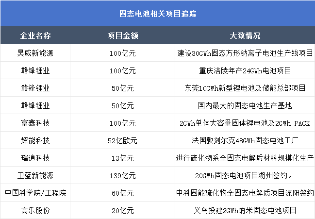 百亿项目落地已经成为了这几年锂电池行业流量最高的新闻,在固态电池方面也是如此。