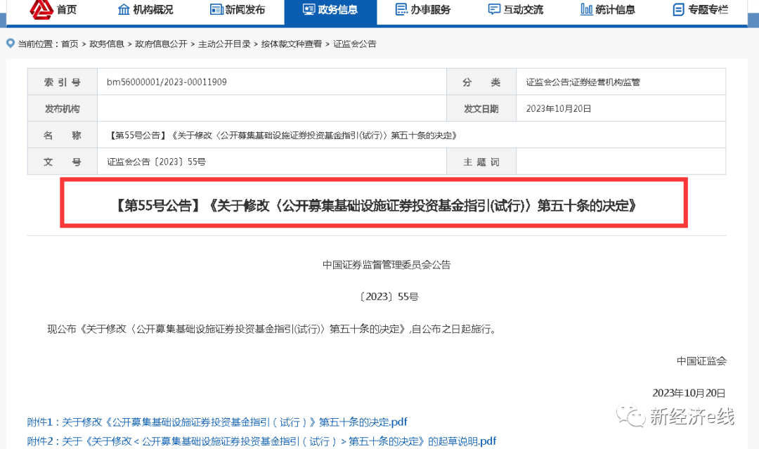 据证监会官网披露,为进一步拓宽基础设施领域不动产投资信托基金(REITs)试点资产范围,丰富投资者选择,促进公募REITs市场健康发展,不断提升资本市场服务实体经济能力,10月20日,证监会发布《关于修改〈公开募集基础设施证券投资基金指引(试行)〉第五十条的决定》,将公募REITs试点资产类型拓展至消费基础设施,自发布之日起施行。