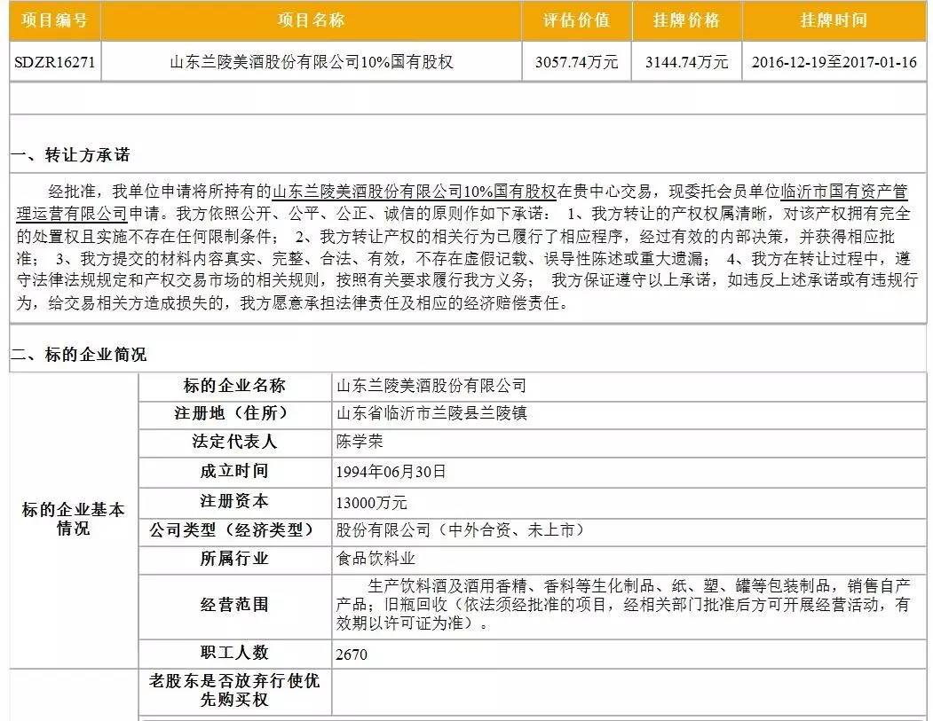 2010年,山东兰陵美酒股份有限公司曾通过山东产权交易中心挂牌出让过832万股,合计6.4%的公司股份。