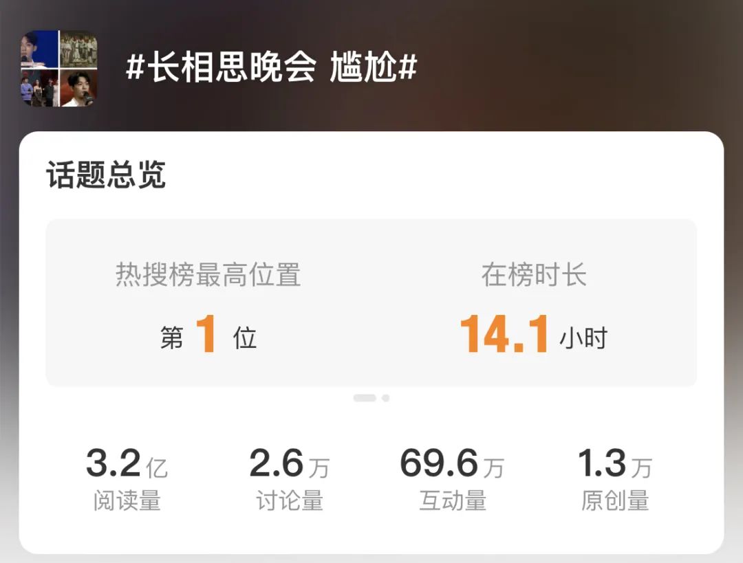 大结局两个月之后,《长相思》在10月17日办了一场“收官庆典大荒巡礼狂欢夜”。当晚热搜被《长相思》刷屏,但登顶时间最长的词条却是#长相思晚会 尴尬#。
