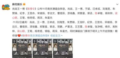 在#长相思晚会 尴尬#的热搜词条下面,也有人在回忆当年《陈情令》演唱会的盛况,“演员能唱跳,流程安排好。晚会结束的时候,一个角色一个角色告别,一个家族一个家族离开,离开一个升上去一个灯笼,氛围灯光玩到极致……”