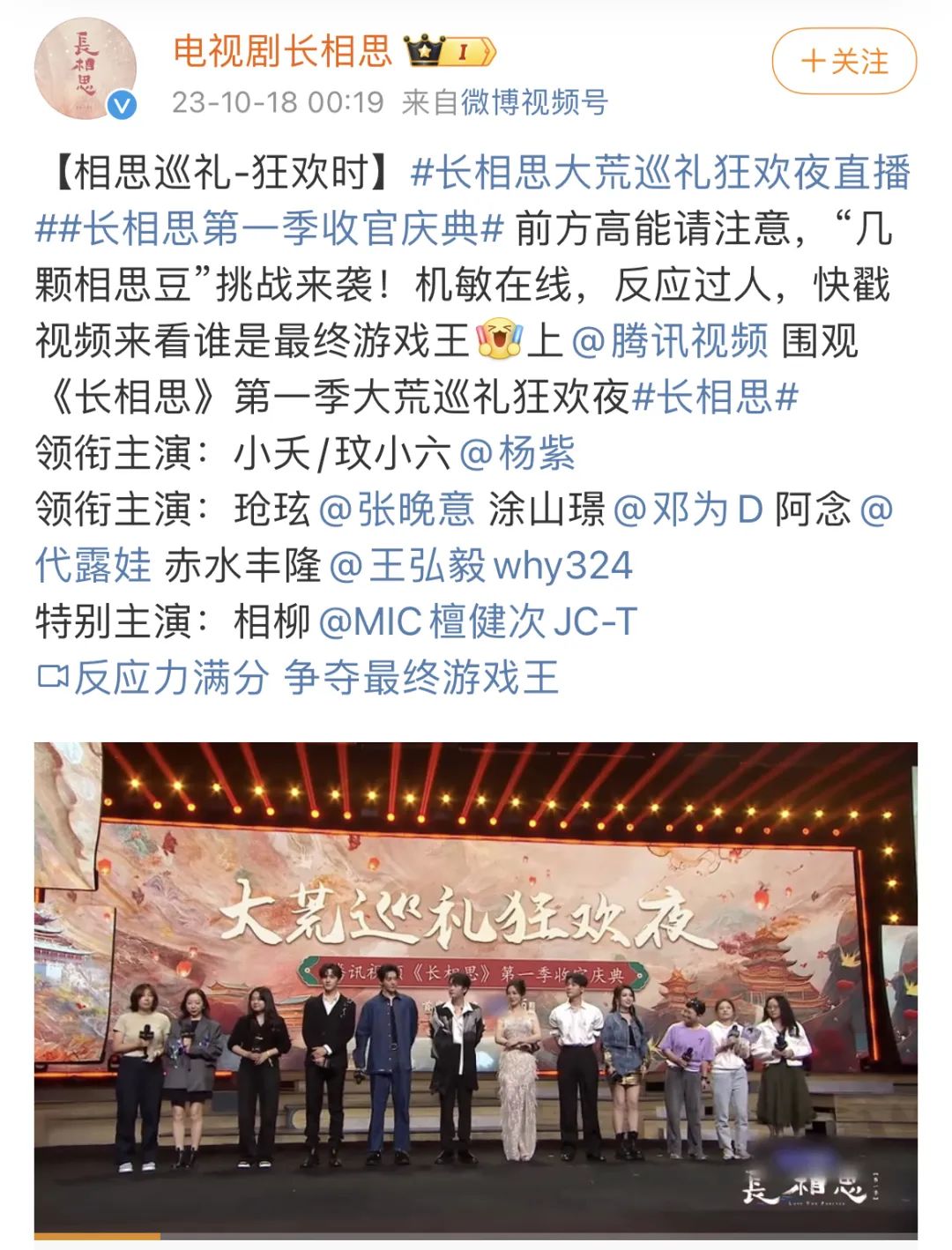 《长相思》的特殊性恰恰在于,它并不是只有一季的剧集,第二季正在赶来的路上。在第二季开始之前,作为链接IP粉丝感情的“收官庆典大荒巡礼狂欢夜”也会给第二季的营销带来一些杂音。