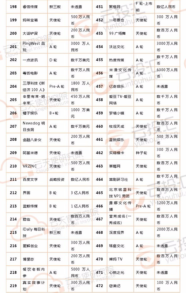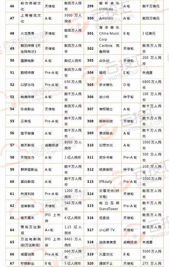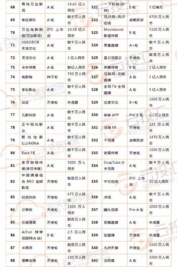 从投资机构来看,中科招商表现抢眼。此前,中科招商曾经投资过慈文影视、长龙影视并成功上市实现退出,又与海泉投资基金合作,共同出资设立中科海泉影视文化创业投资管理有限公司。2016年中科招商继续发力,多点布局,据不完全统计,投资项目数十余个,包括影视/视频、动漫、音乐、媒体等多个领域。此外,中科招商投资的光合映画影视传媒无锡股份有限公司已在新三板挂牌上市。