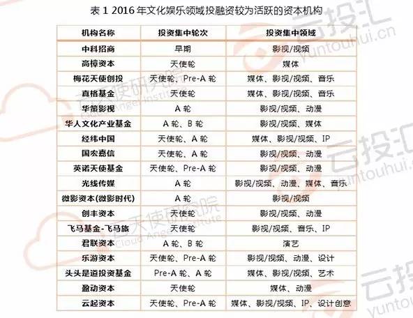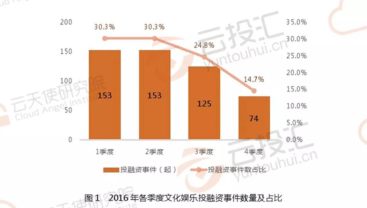 回顾过去的一年,在宏观市场低迷的大背景下,文化娱乐产业作为拉动经济増长的新引擎在整个国民经济中的重要性大幅提升。根据云投汇 云天使研究院发布的2016年我国互联网非公开股权融资行业季度系列报告可以看出,文化娱乐成功融资项目数一直居前,那么文化娱乐在整体创投市场表现如何?哪些细分领域领跑?又有哪些机构表现活跃?