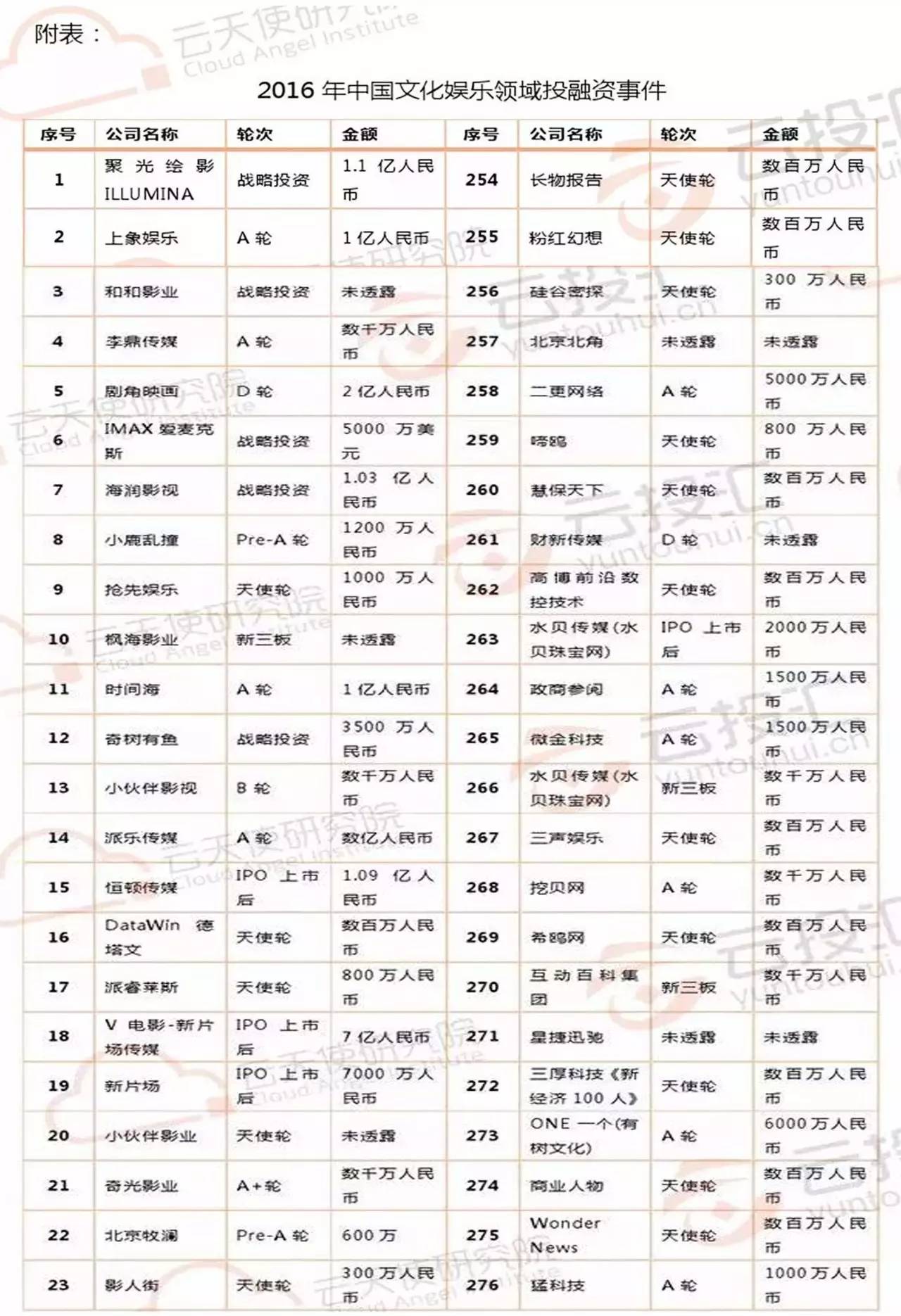 对此本文通过互联网等公开渠道整理了2016年中国文化娱乐领域投融资事件共505件,并将结合这些统计数据,从多维度对文娱创投市场进行梳理与分析。