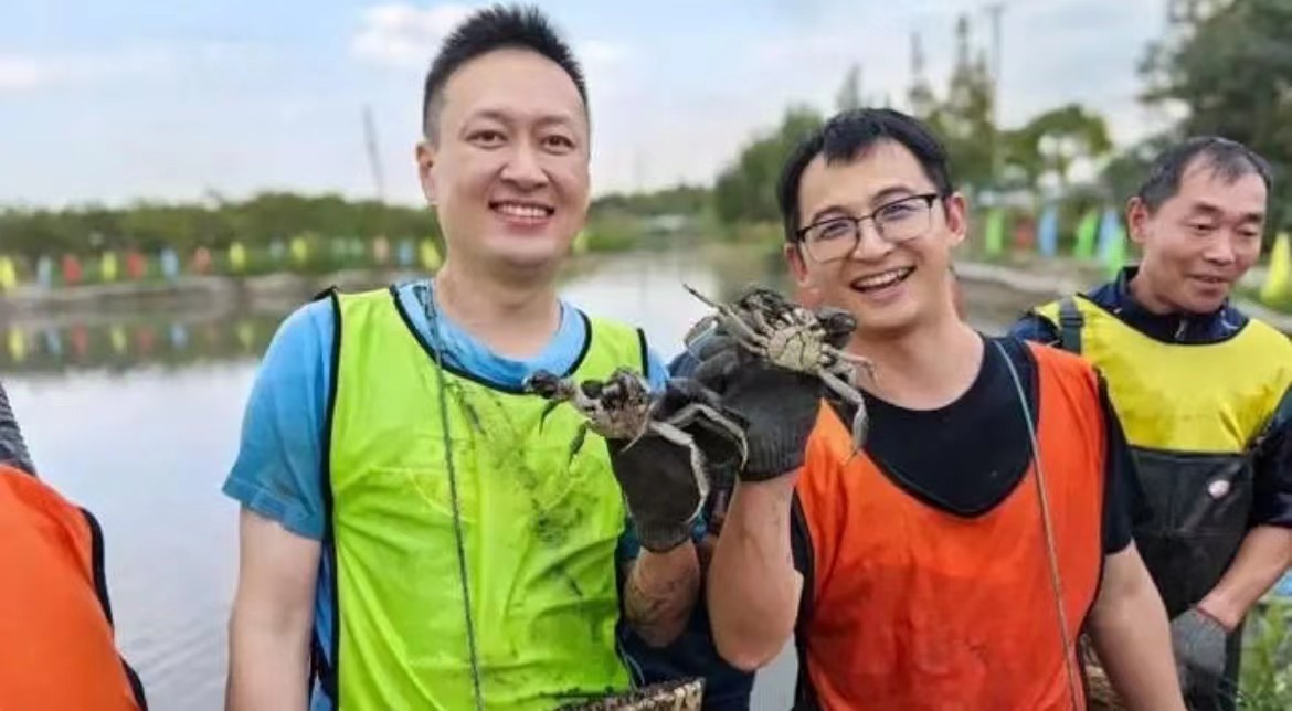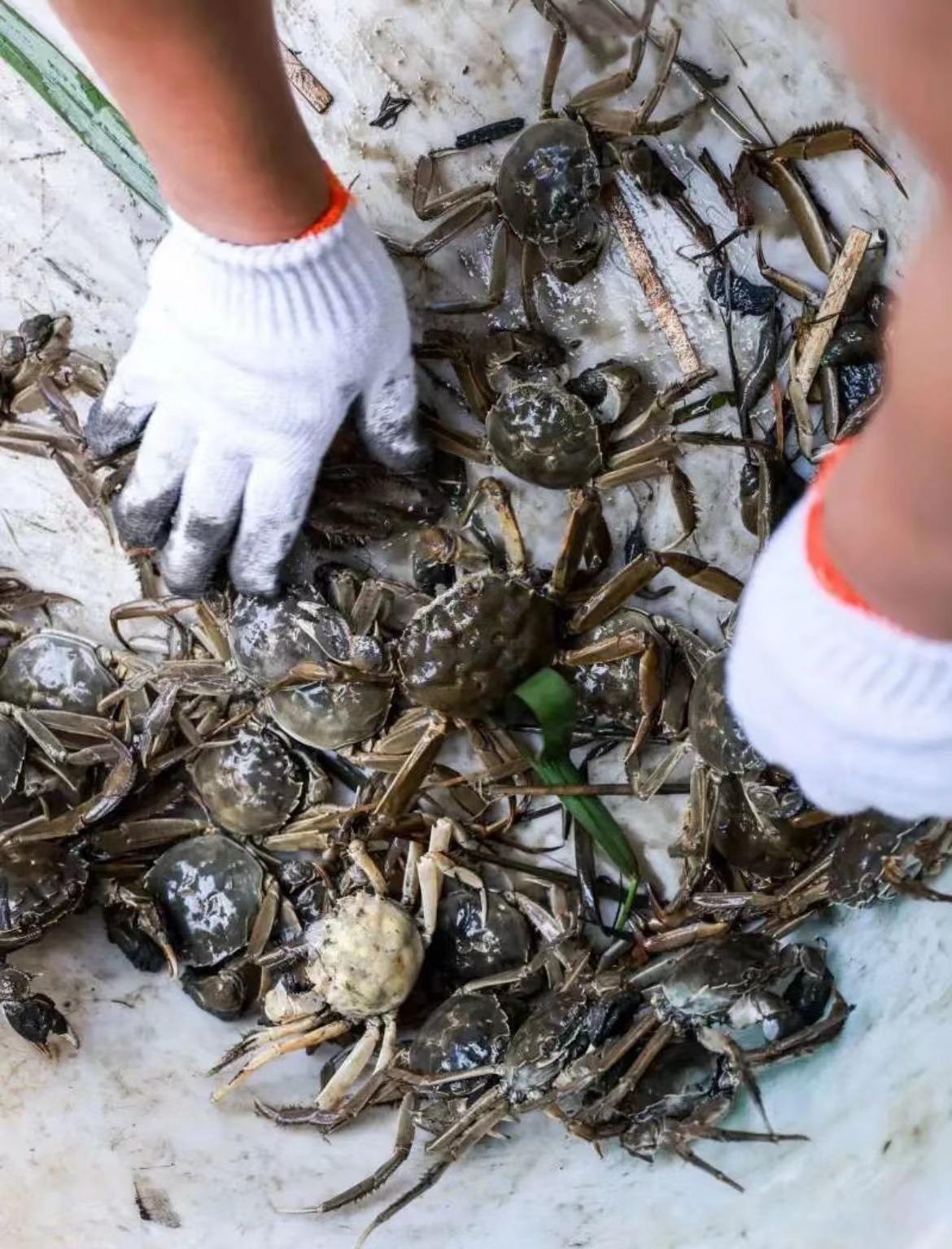 来到靠近长江口的罗泾镇海星村,占地数百亩的蟹塘看起来颇为壮观。作为罗泾镇特色乡村产业的一张名片,这里养殖的宝山湖大闸蟹以个大、腿长、肉肥闻名,其脂白如玉、膏黄如金、甘醇味美,从2012年到2022年连续十一年荣获“王宝和杯”全国河蟹大赛金蟹奖,2020年获得最佳口感奖的殊荣。