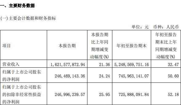 第三季度,珀莱雅实现营业收入为16.22亿元,同比增长21.36%;对应实现归母净利润为2.46亿元,同比上涨24.24%。