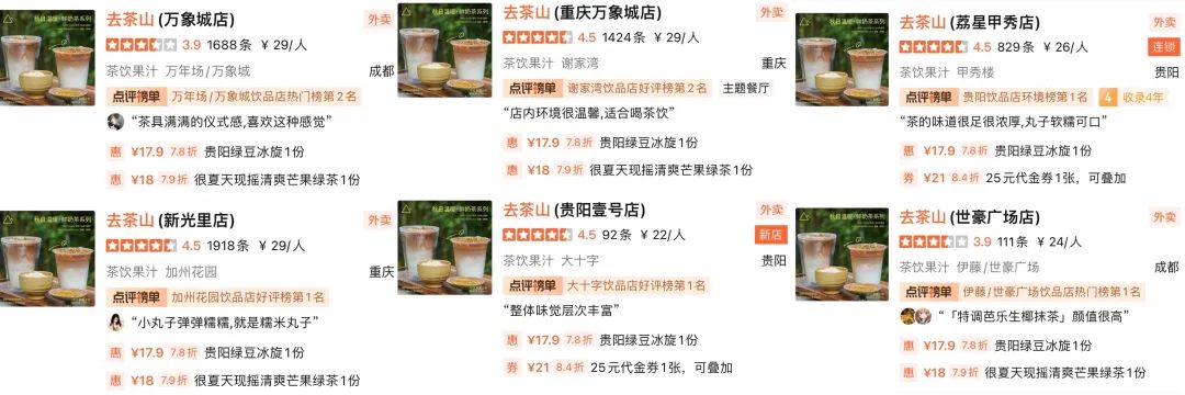大众点评上,去茶山多家门店都冲上了当地茶饮热门榜第一,门店最长收录时间已经有16年。
