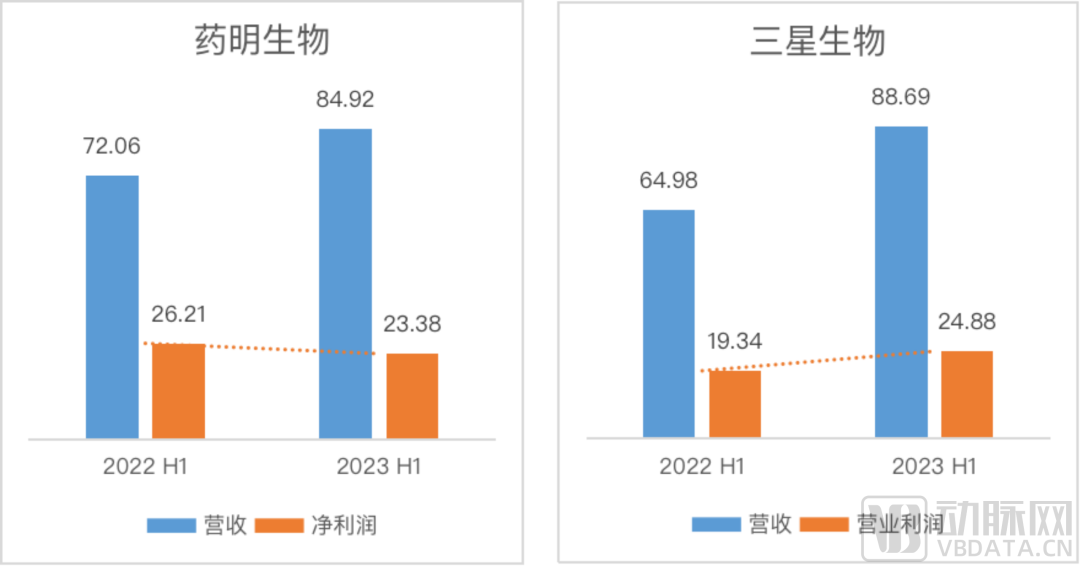 值得关注的是三星生物今年极快的增长速度,2023年上半年,三星生物营收达到88.69亿元,同比增长约36.5%,营业收入为24.88亿元,同比增长28.6%。