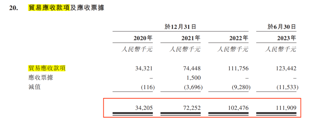 招股书显示,2020年-2023年6月,企业的贸易应收款项及应收票据分别为3420.5万元、7225.2万元、1.02亿元、1.12亿元,逐步攀升。