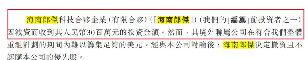 其中,投资方海南郎杰收到减资的3000万元投资款,但其境外联属公司在重组计划的期间内难以筹集足够的美元,海南郎杰决定撤资且不认购优先股。