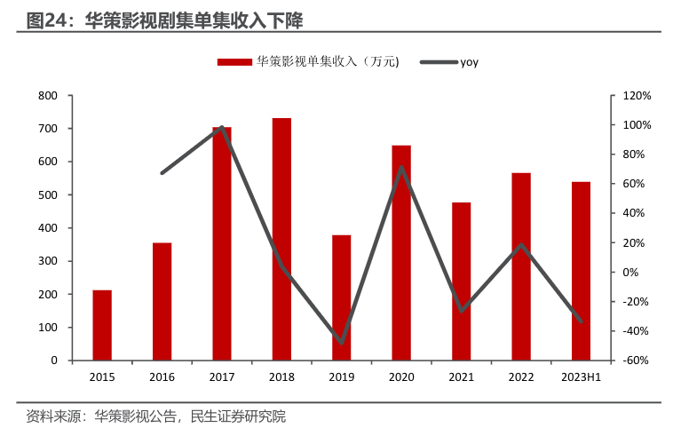 在监管部门与企业的共同推动下,艺人片酬得以下降,内容成本明显下降。以华策为例,2018年之后,单集收入呈下滑态势。