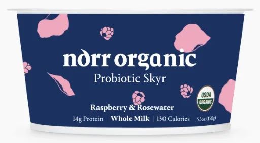 来自美国的品牌Norr Organic打造了一系列冰岛酸奶。以一款含有覆盆子和玫瑰水的益生菌冰岛酸奶为例,其产品采用草饲奶牛的牛奶,每杯酸奶含有14克蛋白质和BB-12益生菌。该酸奶还使用全有机配料,带有美国农业部的有机认证,为非转基因食品,无农药,无麸质,无人工添加物质。