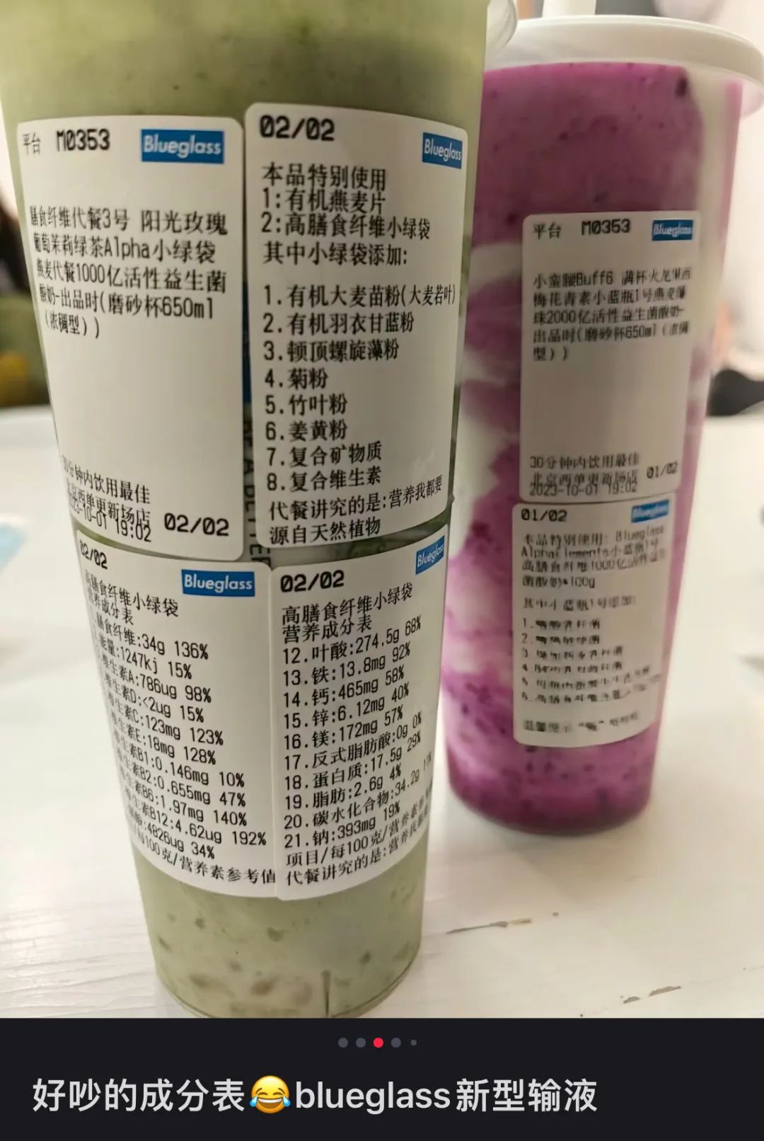 这一点从网友们调侃用blueglass酸奶进行“新型输液”,也可以看出一二。Blueglass在杯身贴纸上,列出了一大串不同类型的维生素、矿物质等营养成分。消费者开始关注增加多样化营养配料的摄入。