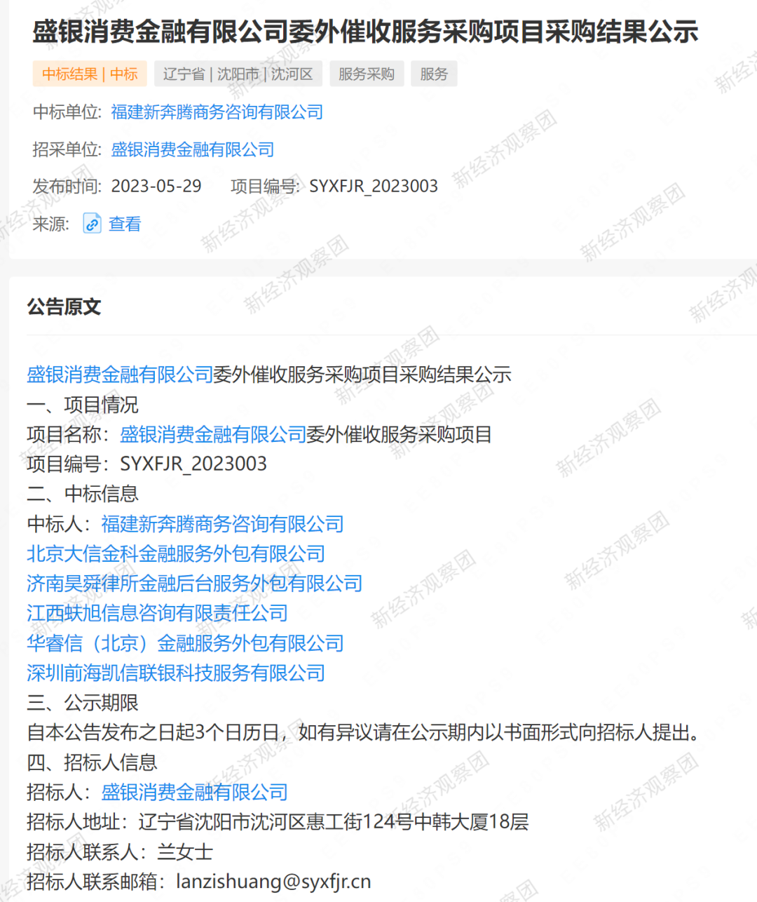 03、盛银消金:6家催收机构中标