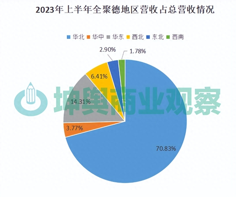 地区分布主要集中在华北地区。上半年,全聚德华北地区营收占总营收的70.83%、华东地区营收占总营收的14.31%、华中地区营收占总营收的3.77%、西北地区营收占总营收的6.41%、东北地区营收占总营收的2.9%、西南地区营收占总营收的1.76%。