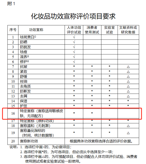 根据《化妆品功效宣称评价规范》的要求,“敏感肌适用”属于“特定宣称”,产品需要开展人体功效试验或者消费者使用测试,通过上述满足法规要求测试的产品即可宣称“敏感肌”适用产品。